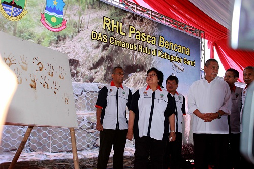 Garut - Jawa Barat, Kementerian Lingkungan Hidup dan Kehutanan (KLHK), Rabu, 22 November 2017. Sebagaimana arahan Presiden RI dan Wakil Presiden RI, agar dilakukan penanganan Daerah Aliran Sungai (DAS) pasca bencana banjir di Kabupaten Garut bulan September 2016 lalu, KLHK beserta Pemerintah Daerah telah melaksanakan pemulihan DAS melalui Rehabilitasi Hutan dan Lahan (RHL) serta pembuatan bangunan Konservasi Tanah dan Air (KTA).