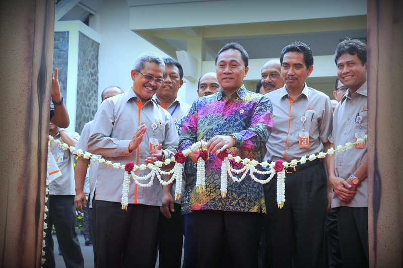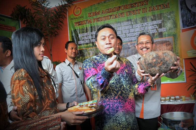 Mengakhiri kunjungan kerjanya Menhut Zulkifli Hasan membuka dan meninjau pameran HUT Perum Perhutani ke-52. (FOTOPUSHUMAS/toya/arset).