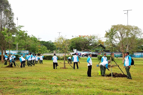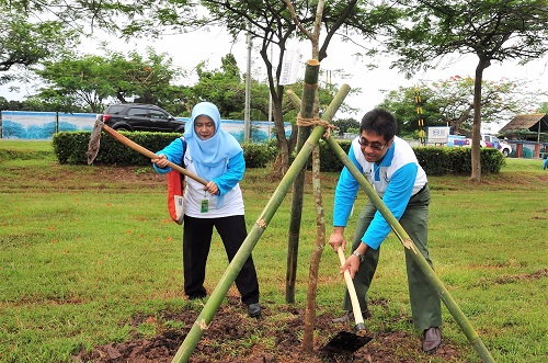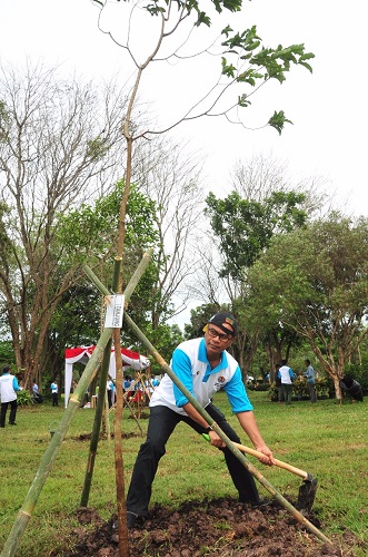 Jakarta, Kementerian Lingkungan Hidup dan Kehutanan (KLHK), Selasa, 28 November 2017. Melengkapi rangkaian kegiatan memperingati Hari Ulang Tahun ke-46 Korps Pegawai Republik Indonesia (HUT ke-46 KORPRI), KORPRI Kementerian Lingkungan Hidup dan Kehutanan (KLHK) bersama-sama dengan PT. Angkasa Pura II, melaksanakan penanaman 550 pohon di lokasi pembangunan Miniatur Hutan Hujan Tropika di Areal Bandara Soekarno Hatta. (28/11/2017)
