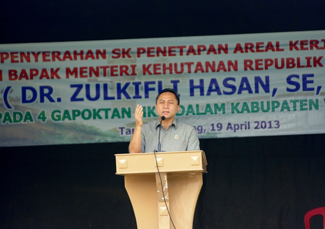 Pada kesempatan ini Menhut yang didampingi oleh anggota DPR RI Alimin dan Dirjen BPDASPS Hilman serta mantan Sekretaris Daerah Provinsi Lampung Irham Djafar Lan Putra berpesan, agar SK HKm yang ditandatanganinya itu benar-benar diserahkan kepada yang berhak yang namanya sudah terdaftar dalam SK tersebut, dan dijaga serta dikelola untuk kesejahteraan masyarakat.