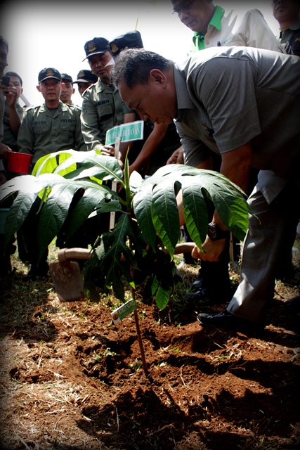 Acara diakhiri dengan penanaman pohon sukun oleh Menteri Kehutanan dan para pejabat yang hadir.(foto: Pushumas Kemenhut/rd/rd/13)
