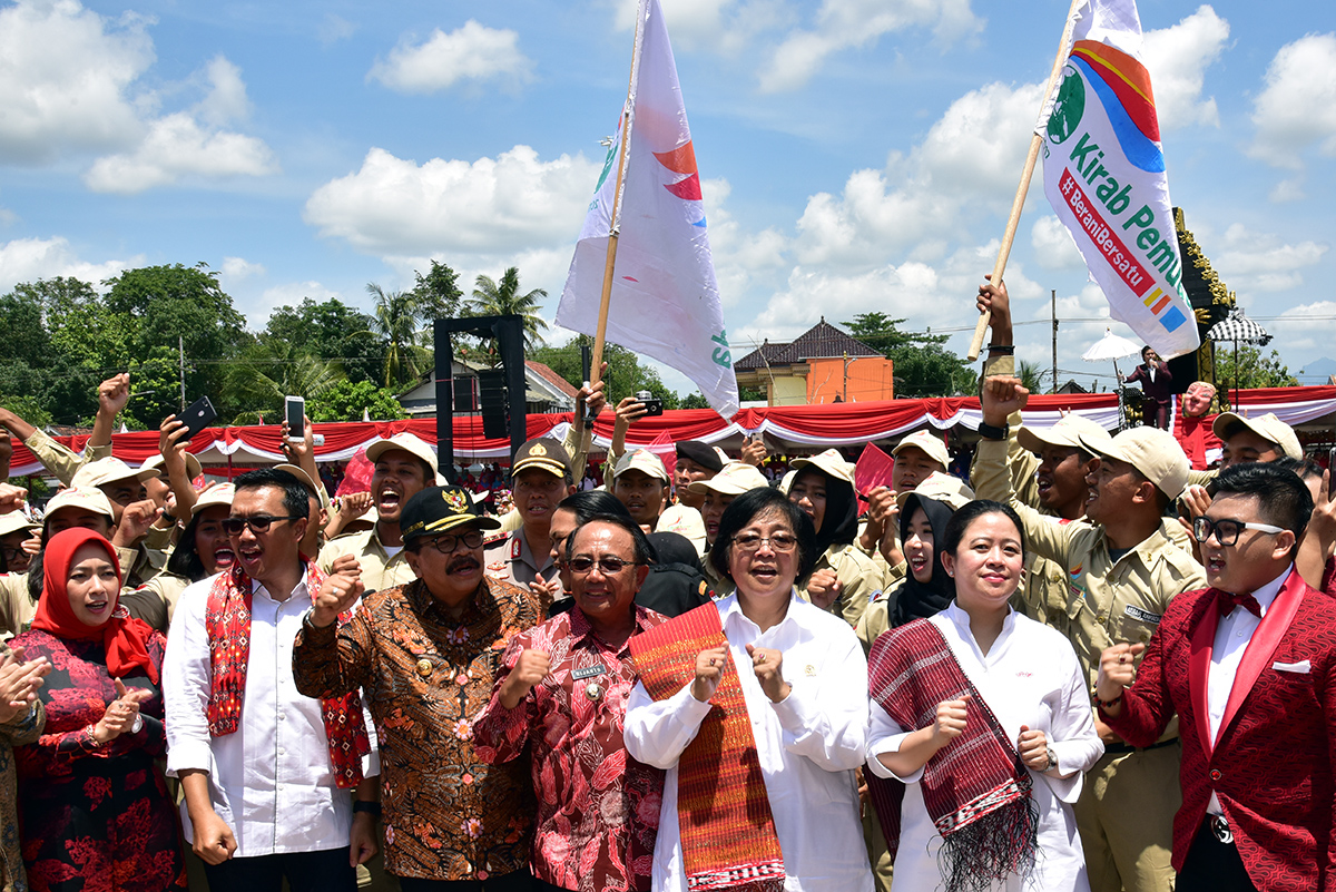 Menteri Lingkungan Hidup dan Kehutanan, Siti Nurbaya menghadiri rangkaian puncak acara Kirab Pemuda 2017 yang berlangsung di Blitar, Jawa Timur (7/12/2017), bersama-sama dengan Menteri Koordinator Bidang Pembangunan Manusia dan Kebudayaan, Puan Maharani serta Menteri Pemuda dan Olahraga, Imam Nahrawi.