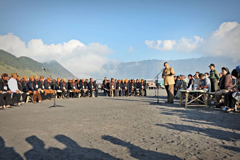 Presiden berdialog dengan masyarakat Tengger yang umumnya pedagang asongan, pengelola penginapan, pengelola Jeep sewaan, tukang ojek, juga petani sayuran yang mukim di kawasan TN Bromo untuk mencari terobosan bagaimana meningkatkan perekonomian rakyat di sana.