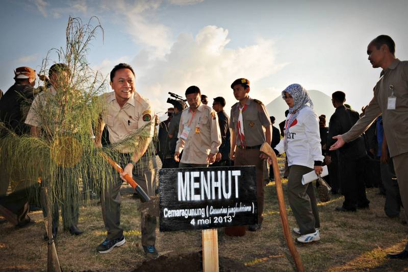 Diakhir acara Presiden dan Ibu Ani serta Menhut melakukan penanaman pohon Cemara Gunung (Casuarina junghuhniana), penanaman juga diikuti oleh para Menteri yang hadir .