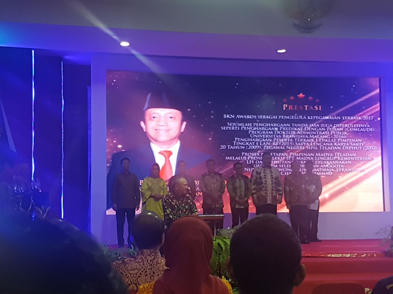 Sebagaimana arahan Menteri LHK Siti Nurbaya, agar KLHK menjadi terdepan dalam menjalankan peraturan dan penyelenggaraan pemerintahan yang baik (good governance), hal ini telah dibuktikan oleh KLHK melalui penghargaan yang diraih oleh Sekretaris Jenderal KLHK, Dr. Ir. Bambang Hendroyono, MM., yang didaulat menjadi Top 9 Pejabat Pimpinan Tinggi Madya Teladan Tingkat Nasional Tahun 2017, di Jakarta, (28/12).