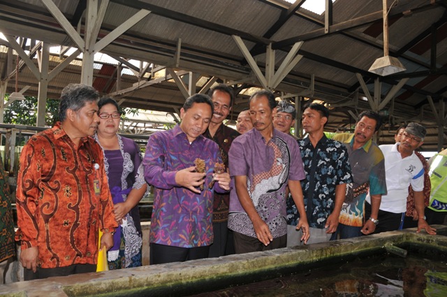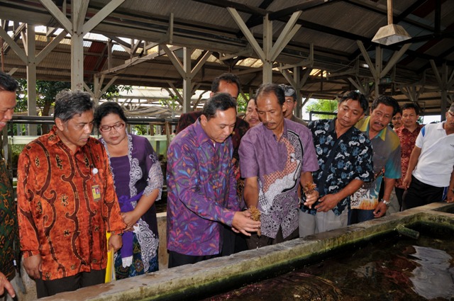 Selanjutnya Menhut meninjau lokasi penangkaran kima (kerang hias) dan transplantasi karang di desa Tembok Kabupaten Singaraja Bali (17/5). Menhut menyatakan bahwa upaya penangkaran ini perlu mendapat dukungan pemerintah karena sesuai dengan kaidah konservasi dan berkelanjutan. Penangkaran dan transplantasi karang ini akan dikembangkan ditempat lain di Indonesia. Upaya ini, selain melestarikan lingkungan laut juga dapat membuka lapangan kerja bagi masyarakat, karena merupakan peluang bisnis yang menguntungkan. Kima dan terumbu karang merupakan komoditas ekspor yang banyak diminati negara-negara di Eropa. (foto Humas Kemenhut win/rd/rd)