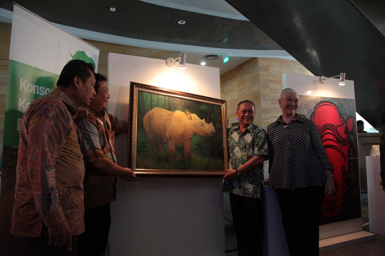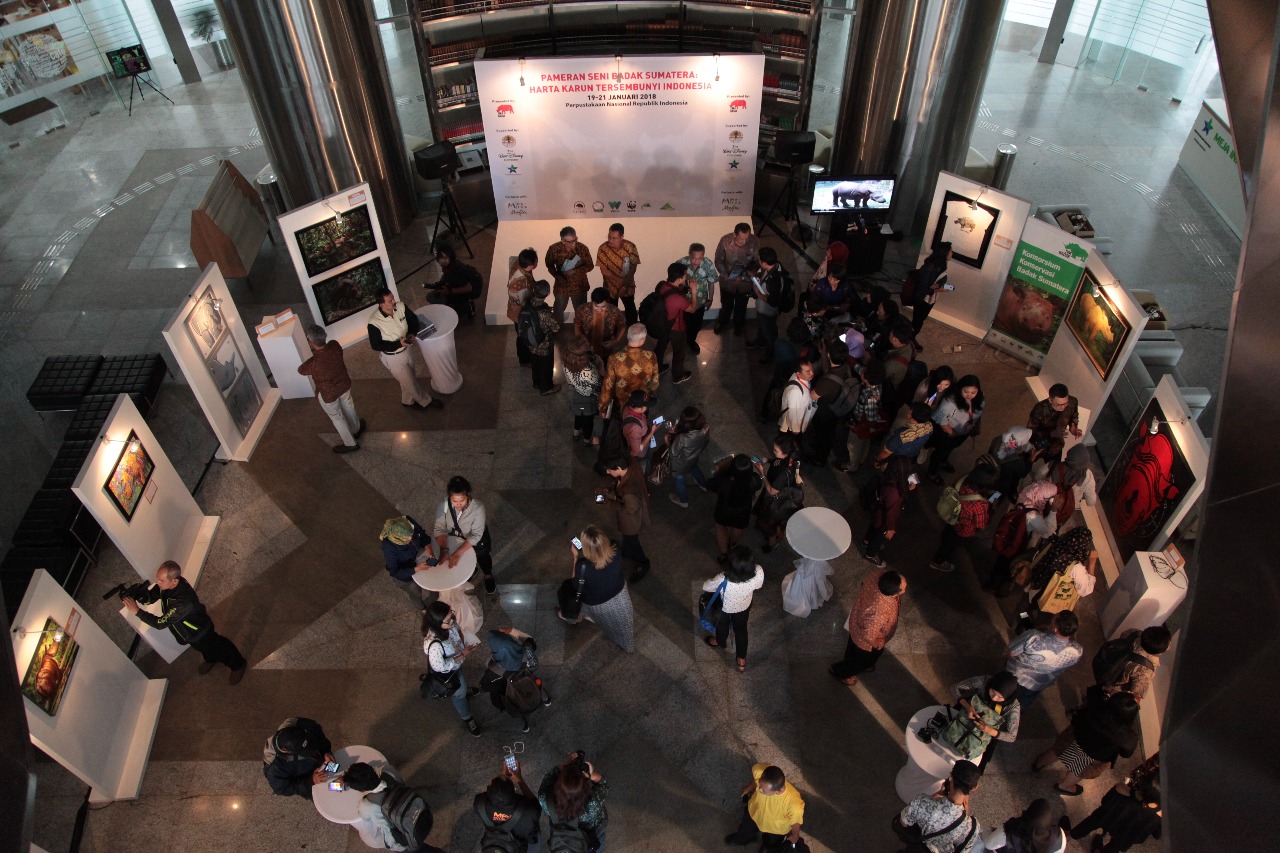 Jakarta, Kementerian Lingkungan Hidup dan Kehutanan (KLHK), Sabtu, 20 Januari 2018. Kini para pecinta seni dapat turut berperan dalam upaya pelestarian satwa liar. Sebagaimana Pameran Seni dan Lelang Amal, yang digelar KLHK dan Tim Badak di Perpustakaan Nasional Republik Indonesia (PNRI), di Jakarta, tanggal 19-21 Januari 2018, disini seluruh hasil pelelangan akan disumbangkan untuk program Konservasi Badak Sumatera.