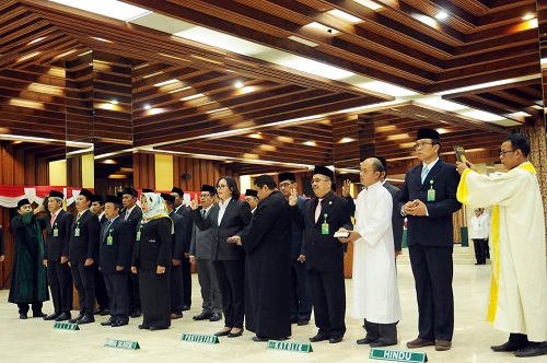 Jakarta, Kementerian Lingkungan Hidup dan Kehutanan (KLHK), Kamis, 1 Februari 2018. Sekretaris Jenderal KLHK Bambang Hendroyono melantik 24 orang Pejabat Administrator Eselon III lingkup KLHK Kamis sore, (1/02/2018) di Jakarta. Pelantikan ini untuk mengakselerasi kinerja organisasi KLHK, yang membutuhkan orang-orang dengan kompetensi yang tinggi dan mau bekerja keras untuk membawa KLHK menjadi organisasi yang terus maju.