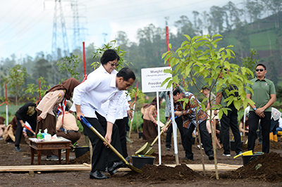 Bandung, Kementerian Lingkungan Hidup dan Kehutanan (KLHK), Kamis, 22 Februari 2018. Presiden RI Jokowi, Menteri Lingkungan Hidup dan Kehutanan Siti Nurbaya bersama masyarakat sekitar menanam 1.000 ba...