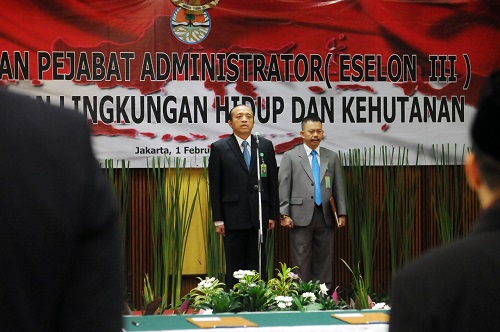 Jakarta, Kementerian Lingkungan Hidup dan Kehutanan (KLHK), Kamis, 1 Februari 2018. Sekretaris Jenderal KLHK Bambang Hendroyono melantik 24 orang Pejabat Administrator Eselon III lingkup KLHK Kamis so...