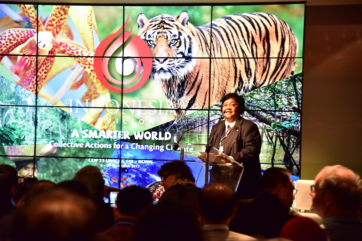 Bonn-Jerman, Biro Humas Kementerian Lingkungan Hidup dan Kehutanan (KLHK), Kamis, 16 November 2017. Seiring semangat negosiasi pengendalian perubahan iklim pada COP 23 UNFCCC, Menteri LHK, Siti Nurbay...