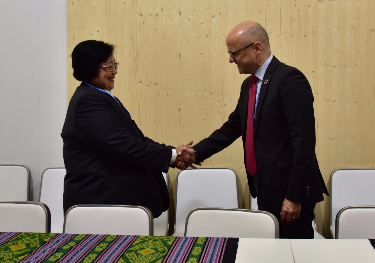 Bonn, Jerman, Menteri Lingkungan Hidup dan Kehutanan, 17 November 2017. Disela-sela kesibukan mengikuti High Level Meeting COP 23 UNFCCC, menyediakan waktu audiensi (lebih dikenal dengan Treffen) deng...