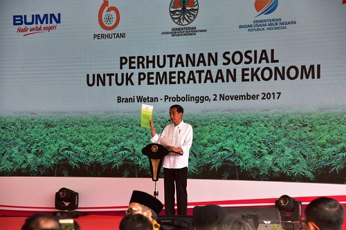 Probolinggo, Kementerian Lingkungan Hidup dan Kehutanan (KLHK), 2 November 2017. Setelah Provinsi Jawa Barat, Presiden Joko Widodo melakukan pengecekan lapangan program terpadu Perhutanan Sosial ke Pr...
