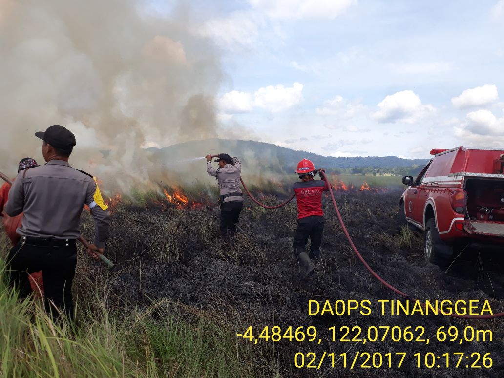 Manggala Agni Daops Tinanggea, Petugas Taman Nasional Rawa Aopa Watumohai (TNRAW), dan Polres Tinanggea harus berjuang selama ...