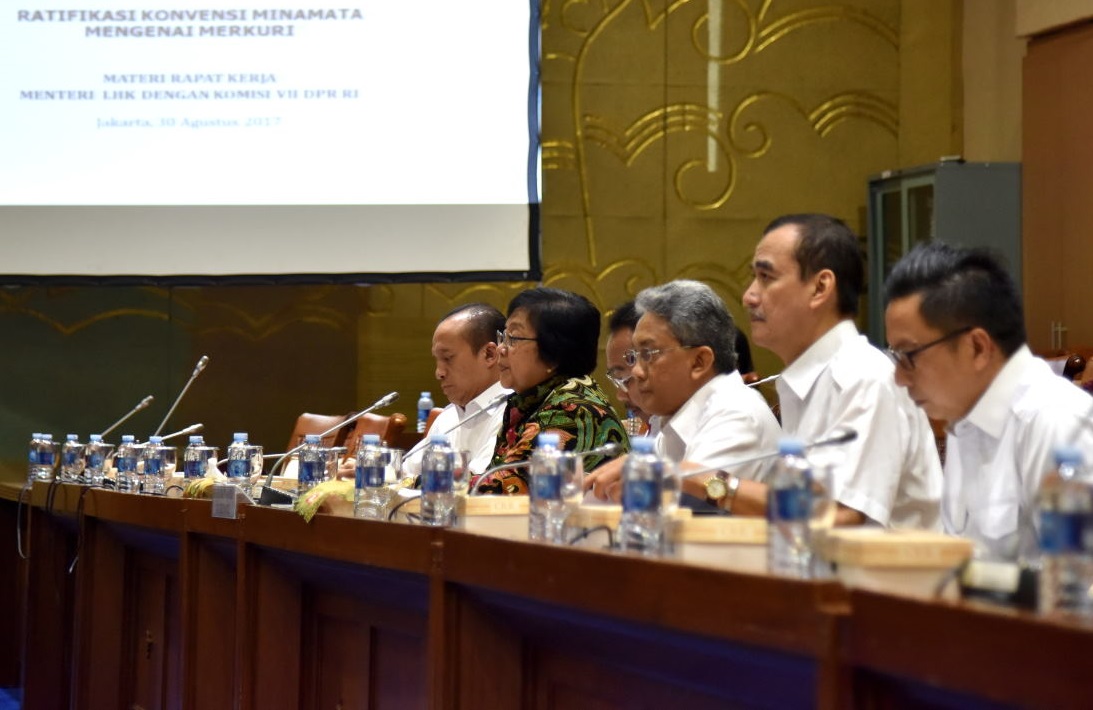 Menteri Lingkungan Hidup dan Kehutanan (LHK) Siti Nurbaya, bersama Wakil Kementerian Hukum dan Hak Asasi Manusia dan Kementerian Luar Negeri, menyampaikan pokok-pokok materi Ratifikasi Konvensi Minama...