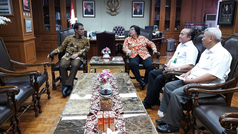 Menteri Pertanian Amran Sulaiman berkunjung ke Kementerian Lingkungan Hidup dan Kehutanan (KLHK), diterima oleh Menteri Lingkungan Hidup dan Kehutanan Siti Nurbaya, dan didampingi Sekretaris Jenderal ...
