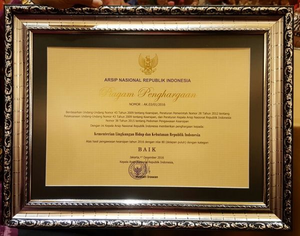 Berdasarkan hasil Laporan Audit Kearsipan Eksternal (LAKE) yang dilaksanakan oleh Arsip Nasional RI (ANRI), Kementerian LHK mendapat Peringkat Terbaik I Audit Pengawasan Kearsipan da...
