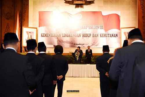 Pada hari ini (Senin, 9 Januari 2017) Sekretaris Jenderal Kementerian Lingkungan Hidup dan Kehutaan (KLHK), Bambang Hendroyono, melantik 12 pejabat Eselon III dan IV Lingkup Kementerian Lingkungan Hid...