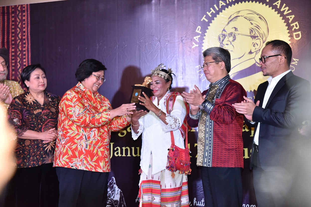 Jakarta, Biro Humas Kementerian LHK, Kamis, 26 Januari 2017. Aleta Baun (54) atau yang akrab disapa Mama Aleta, pejuang lingkungan dari Mollo, Nusa Tenggara Timur (NTT) menerima penghargaan Yap Thiam ...