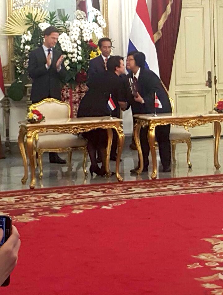 Penandatanganan Kerjasama Menteri LHK RI dan Menteri Lingkungan Belanda, disaksikan Presiden RI dan PM Belanda....