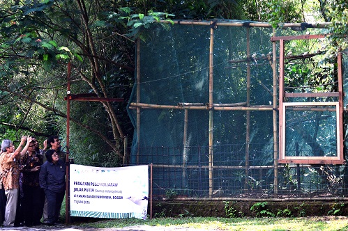 Biro Humas KemenLHK, Cisarua Bogor : Menteri LHK ,Siti Nurbaya dalam kunjungan kerjanya ke Taman Safari Indonesia Cisarua Bogor, Sabtu pagi 11 Juni 2016 melepasliarkan Jalak Putih (Sturnus melanopteru...