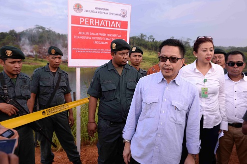 Biro Humas Kementerian LHK, Jakarta : Menteri Lingkungan Hidup dan Kehutanan Siti Nurbaya bersama Ketua Dewan Perwakilan Daerah (DPD) RI Irman Gusman, Sekretaris Daerah Provinsi Riau, Walikota Pekanba...