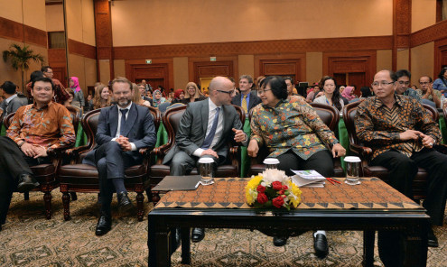 Biro Humas Kemen LHK, Jakarta : Menteri Lingkungan Hidup dan Iklim Norwegia, H.E Vidar Helgesen bersama Duta Besar Norwegia Stig Traavik didampingi oleh Menteri Lingkungan Hidup dan Kehutanan Siti Nur...