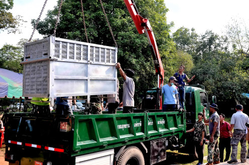 Biro Humas KemenLHK, Jakarta : Kementerian Lingkungan Hidup dan Kehutanan, Kementerian Luar Negeri, TNI, beserta Kedutaan Besar Thailand di Jakarta menyambut kedatangan 14 (empat belas) orangutan Indo...