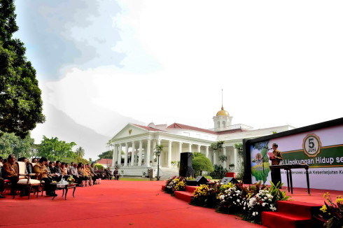 Pushumas Kementerian LHK, Bogor : Presiden RI Joko Widodo memperingati Hari Lingkungan Hidup (HLH) Sedunia Tahun 2015 di halaman Istana Kepresidenan Bogor, Jawa Barat, Jumat (5/6). HLH Tahun ini menga...