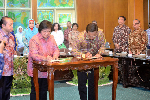 Pushumas Kemen LHK, Yogyakarta : Menteri Lingkungan Hidup dan Kehutanan Siti Nurbaya bersama dengan Gubernur Daerah Istimewa Yogyakarta Sri Sultan Hamengkubuwono X menandatangani Naskah Kesepakatan Be...
