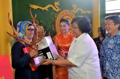 Pushumas Kemenhut, Cisarua Bogor : Menteri Lingkungan Hidup dan Kehutanan Siti Nurbaya memberikan Trophy kepada 3 pemenang kategori umum dan 3 pemenang kategori pelajar Lomba Foto Satwa Inte...