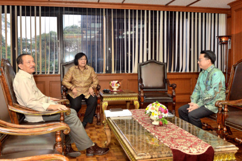 Pushumas Kemenhut, Jakarta : Menteri Koordinator Perekonomian selaku Menteri Kehutanan Ad Interim Chairul Tanjung gelar rapat perdana dengan jajaran Eselon I dan Eselon II Kementerian Kehutanan, Kamis...
