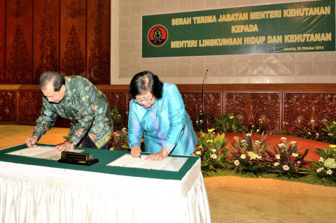 Pushumas Kemenhut, Jakarta : Menteri Lingkungan dan Kehutanan Kabinet Kerja 2014-2019, Dr. Ir. Siti Nurbaya Bakar, M.Sc berharap agar peleburan antara Kementerian Kehutanan dengan Kementerian Lingkung...