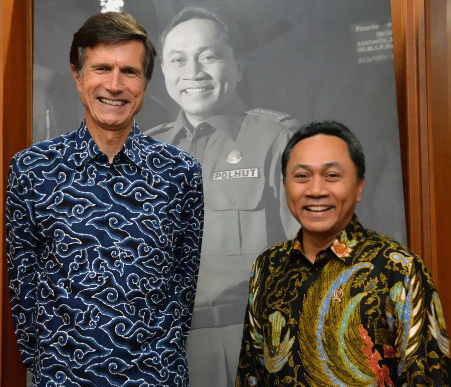 Pushumas Kemenhut, Jakarta : Menteri Kehutanan Zulkifli Hasan menerima kunjungan Duta Besar Amerika Serikat untuk Indonesia, Robert O. Blake, Jumat (19/09) di ruang kerja Menteri Kehutanan Gedung Pusa...