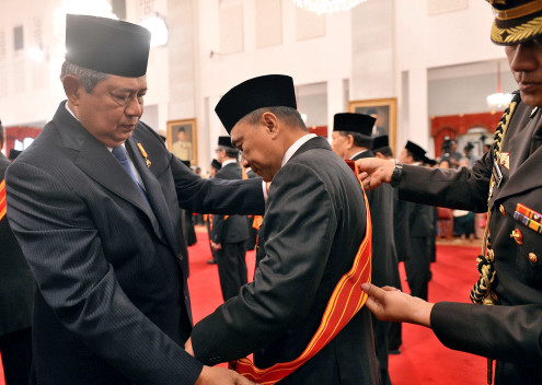 Pushumas Kemenhut, Jakarta : Menteri Kehutanan RI Zulkifli Hasan menerima Bintang Jasa Mahaputra Adipradana dari Bapak presiden RI Susilo Bambang Yudhoyono , Rabu (13/8) di Istana Negara Jakarta. Peng...