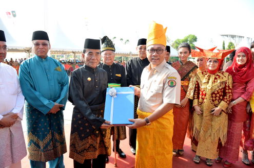 Pushumas Kemenhut, Riau : Menteri Kehutanan Zulkifli Hasan menyerahkan Surat Keputusan Penetapan Rencana Tata Ruang Wilayah Provinsi ((RTRWP) Riau kepada Gubernur Riau Anas Ma...