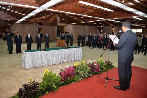 Pushumas Kemenhut, Jakarta: Menteri Kehutanan RI Zulkifli Hasan melantik Pejabat Struktural Eselon I lingkup Kementerian Kehutanan, Jumat (09/5) di Rimbawan I Gedung Kehutanan Manggala Wanabhakti Jaka...
