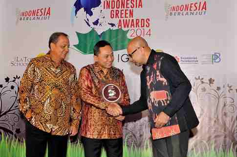 Pushumas Kemenhut, Jakarta : Menteri Kehutanan Zulkifli Hasan menerima penghargaan Life Time Achievement Indonesia Green Awards 2014 dari The La Tofi School of CSR, Rabu (18/06) di Hotel Indonesia Kem...