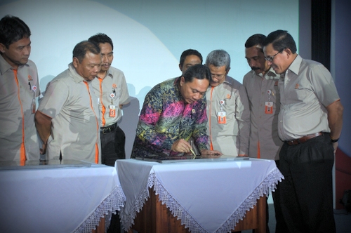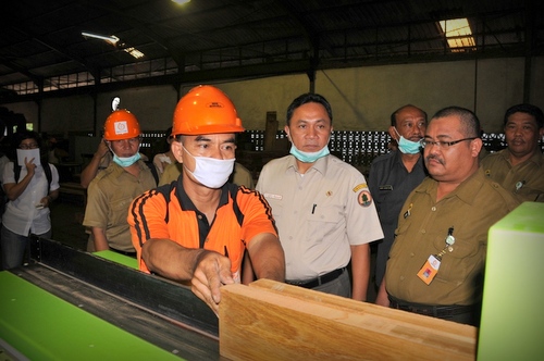 Pushumas Kemenhut, Gresik : Dalam Kunjungan Kerjanya ke Gresik Menteri Kehutanan, Zulkifli Hasan mengunjungi Pengolahan Kayu milik Perum Perhutani Gresik Jatim, Rabu (13/3) . Menhut mendukung atas upa...