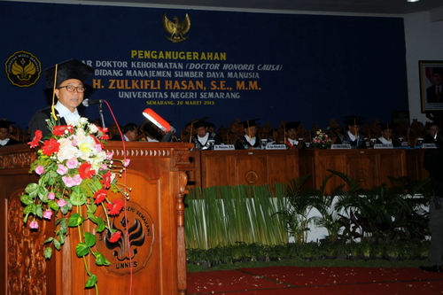 Pushumas Kemenhut, Semarang : Menteri Kehutanan RI Zulkifli Hasan menerima penganugerahan Gelar Doktor Kehormatan (Honoris Causa) Bidang Manajemen Sumber Daya Manusia dari Universitas Negeri Semarang ...