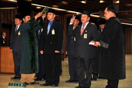 Pushumas Kemenhut, Jakarta: Menteri Kehutanan Zulkifli Hasan, Selasa 23 April 2013 di Jakarta melantik Pejabat Eselon II lingkup Kementerian Kehutanan. Ke-9 orang pejabat eselon II yang dilantik yaitu...