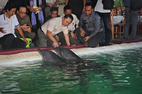 Pushumas Kemenhut, Denpasar : Kementerian Kehutanan akan merehabilitasi dua lumba-lumba hidung botol atau Tursiops truncates yang dipertontonkan sebuah restoran di kawasan Pelabuhan Benoa, Bali untuk ...