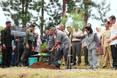 dan dalam rangka menyukseskan gerakan penanaman 1 Milyar Pohon, Menteri