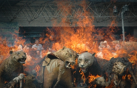 Pushumas Kemenhut, Jakarta: Kementerian Kehutanan Senin 12 November 2012 melakukan pemusnahan barang bukti sitaan hasil upaya penegakan hukum bidang kehutanan berupa opset beberapa jenis satwa liar. P...