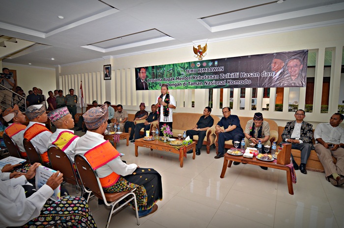 Pushumas Kemenhut, Labuan Bajo : Menteri Kehutanan Zulkifli Hasan didampingi Dirjen Perlindungan Hutan dan Konservasi Alam (PHKA) Darori, Dirjen Bina Pengelolaan Daerah Aliran Sungai dan Perhutanan So...