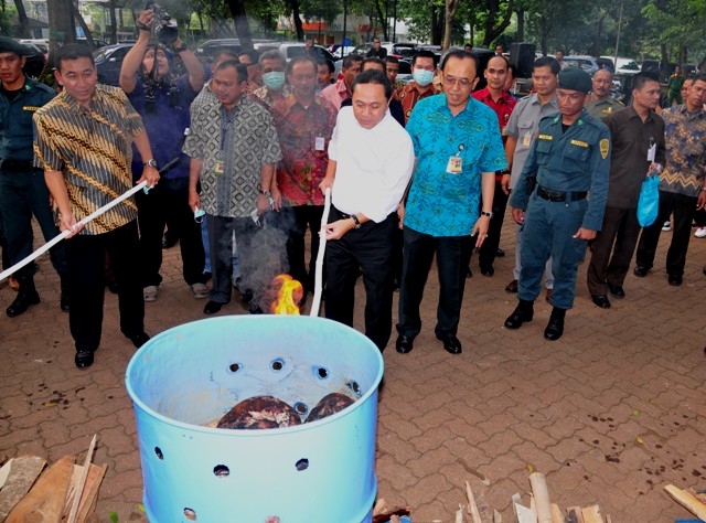 95,96 Kg sisik trenggiling secara simbolis dimusnahkan oleh Menteri