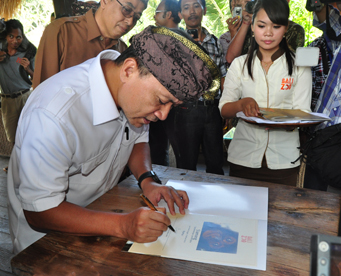 Baltasar Kambuaya dan Gubernur Kaltim Nawang Faroek mendampingi Menko