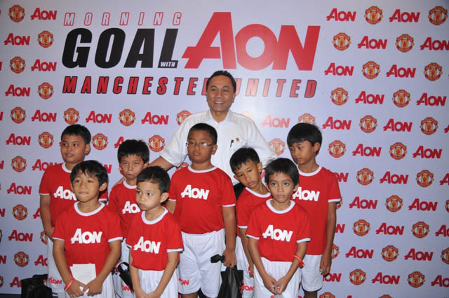 menerima kaos Manchester United dari legenda pesepak bola Manchester