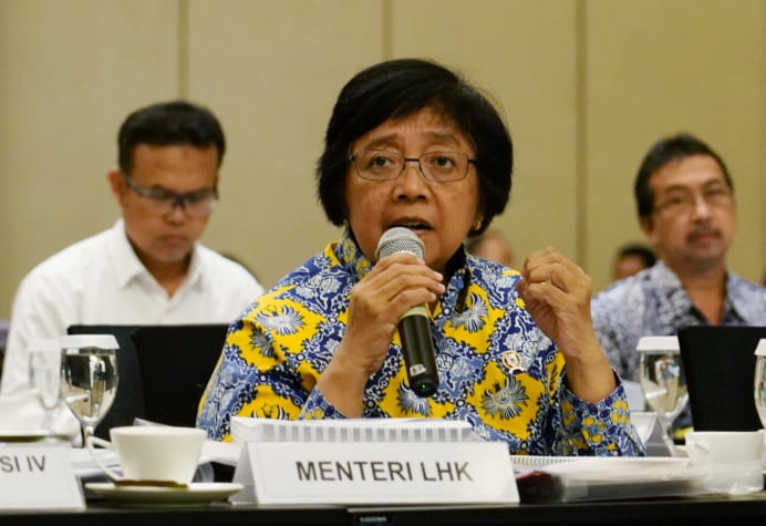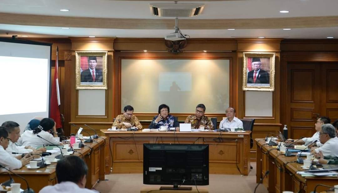 Menteri Lingkungan Hidup dan Kehutanan (LHK), Siti Nurbaya, Wakil Menteri LHK, Alue Dohong, bersama-sama dengan Pimpinan Komisi IV DPR-RI, Hasan Aminuddin dan Budi Djiwandono pada Rabu (26/02/2020) di...