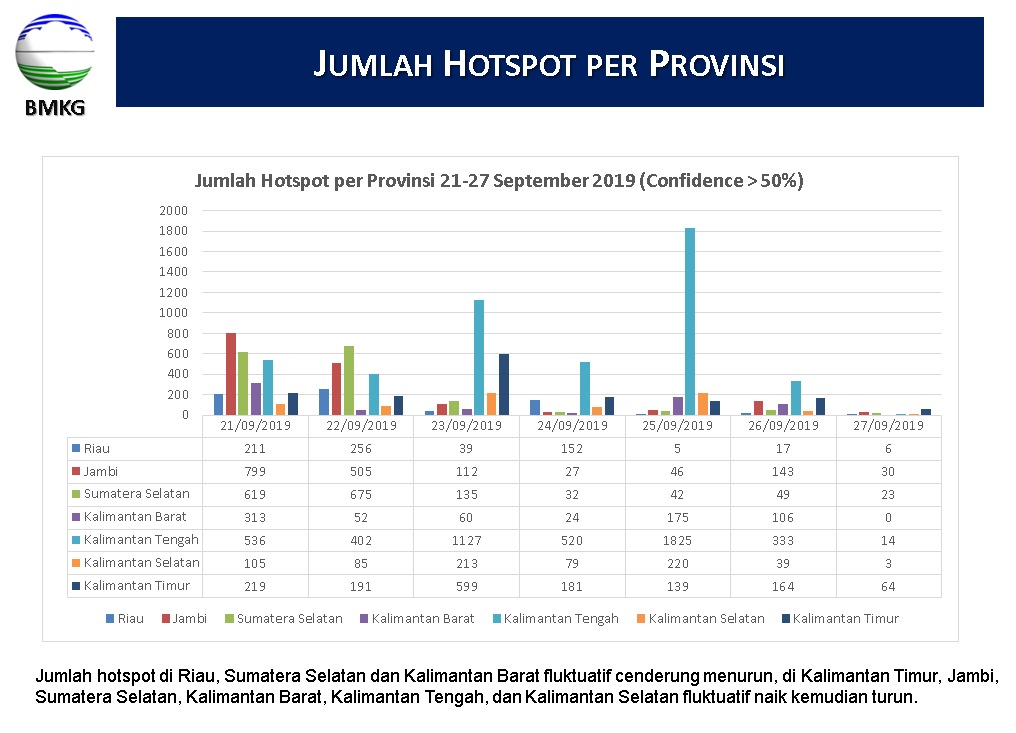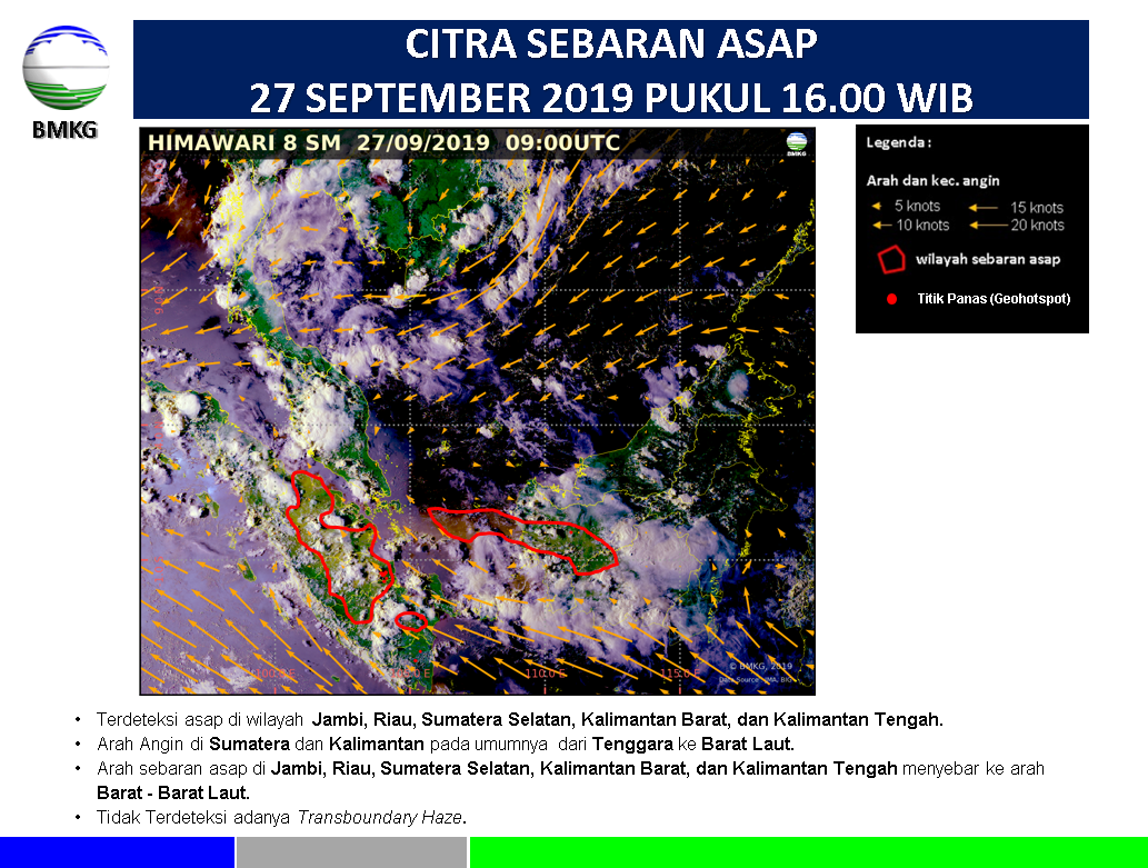 Data Laporan Posko Pengendalian Kebakaran Hutan dan Lahan tanggal 27 September 2019 pukul 18.00 WIB, satelit NOAA menunjukkan tidak adanya titik panas (hotspot) di beberapa wilayah rawan karhutla. Sed...